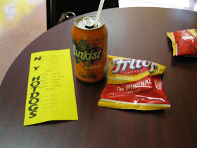 We both ordered the combo - a dog, bag of chips and soda for $4.50. Not bad at all. I got the dog with some sort of red onion sauce and brown mustard. It was easily a step above what you get at Exxon Tiger Market for a buck.